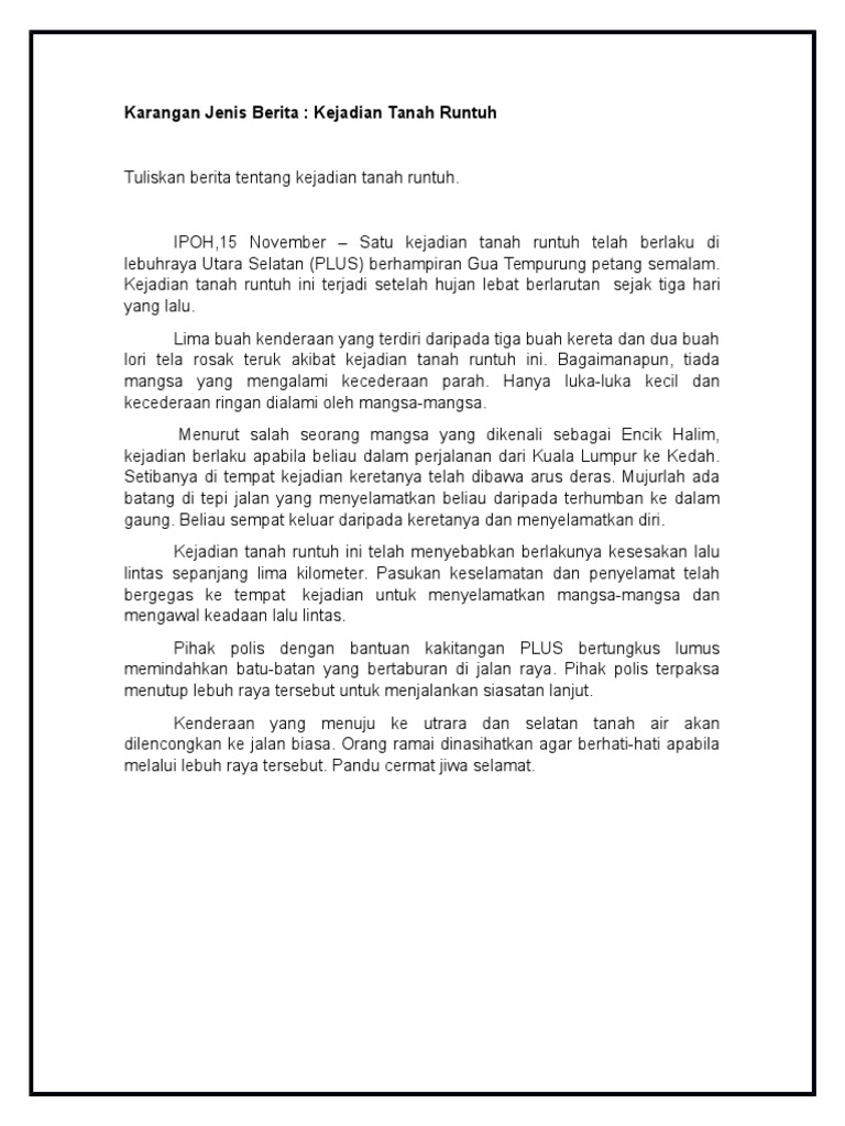 Karangan Jenis Berita Kejadian Tanah Runtuh