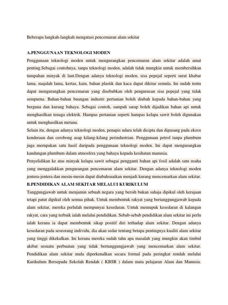 Contoh Karangan Cara Cara Mengatasi Pencemaran Alam Sekitar Upsr