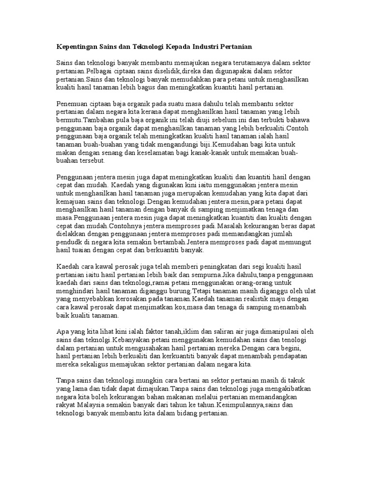 Contoh Karangan Kepentingan Sains Dan Teknologi Wo Contoh