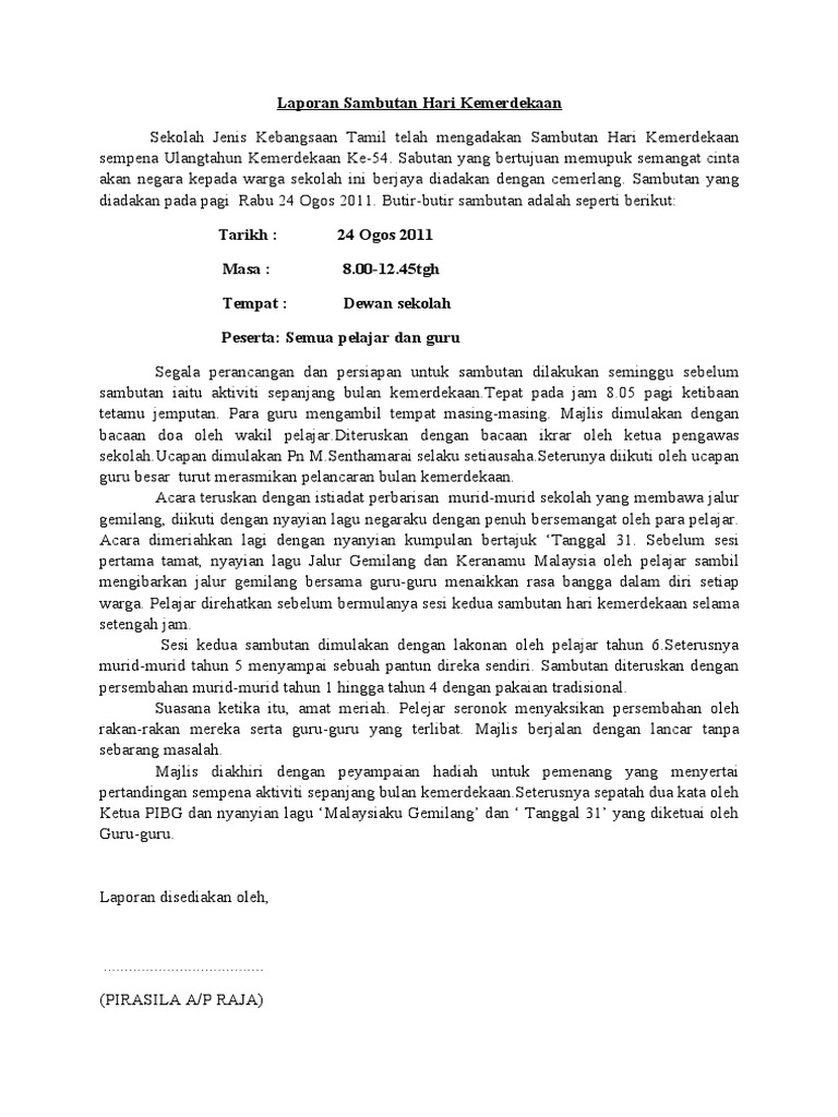 Contoh Karangan Laporan Sambutan Kemerdekaan Peringkat Sekolah Reljo3m7z7n1