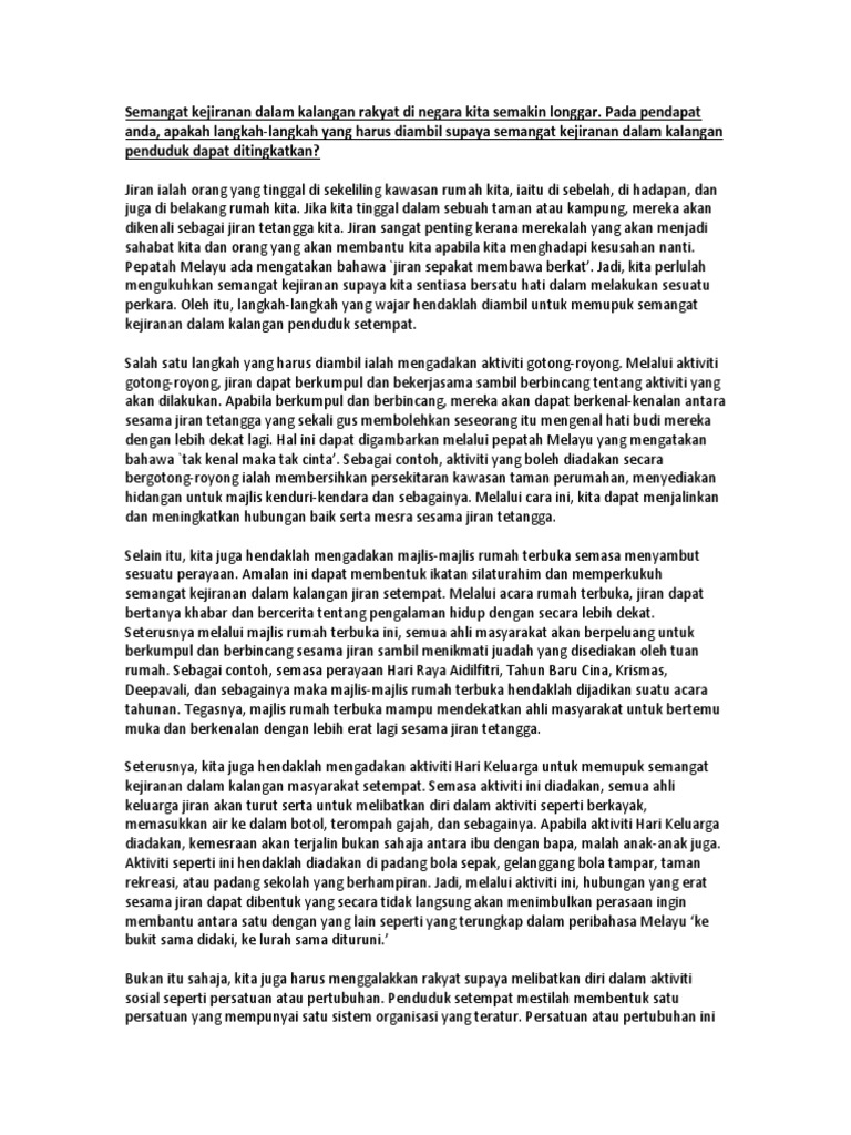 Karangan Bahasa Melayu Spm Kertas 1 Bahagian A Usaha Usaha Memupuk Semangat Kejiranan Dalam Kalangan Masyarakat Di Malaysia Karangan Bahasa Melayu Spm