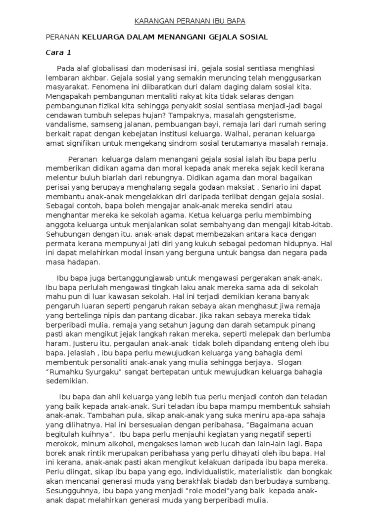 Contoh Karangan Peranan Ibu Bapa