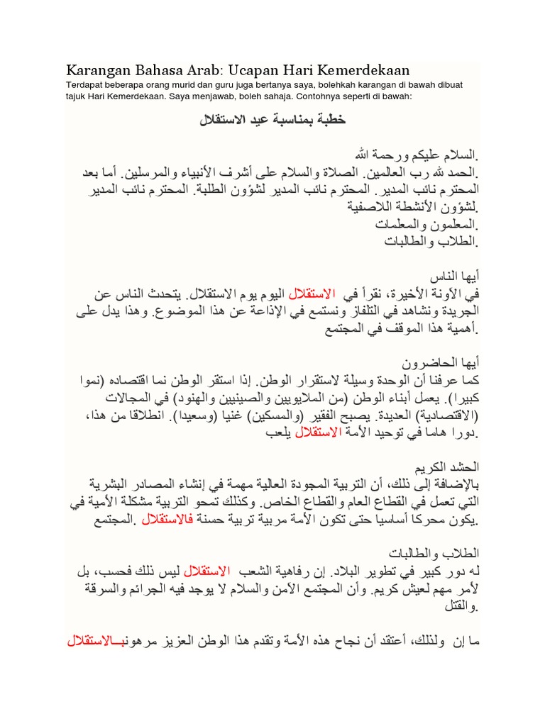 Karangan Bahasa Arab Hari Kemerdekaan