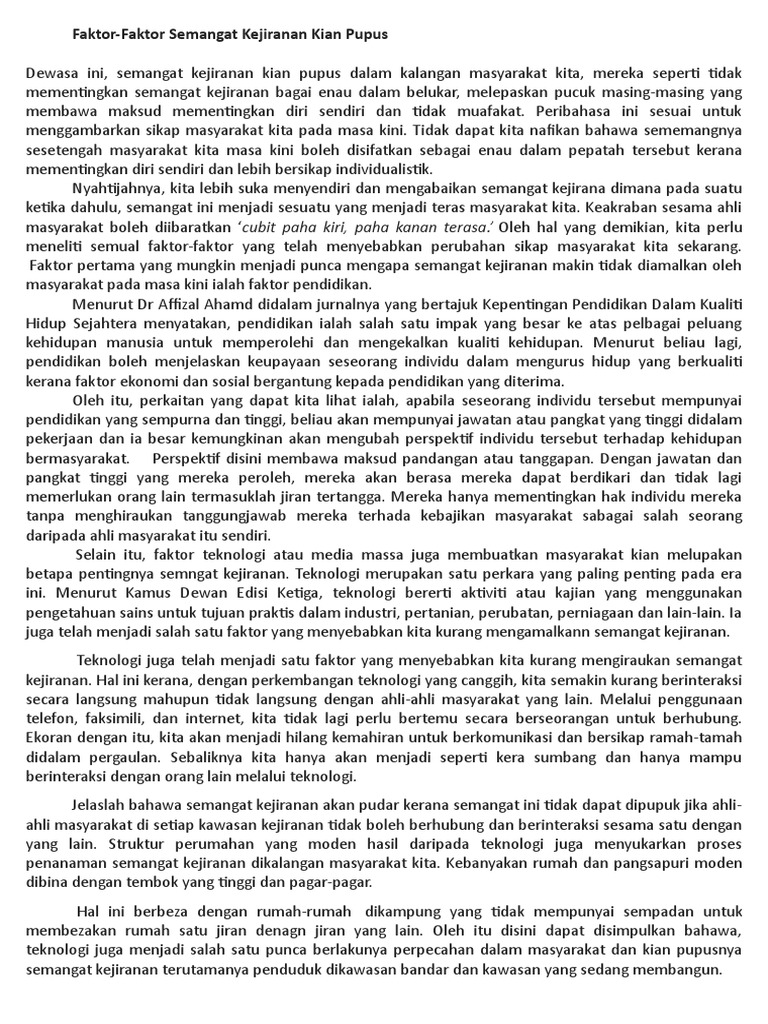 Karangan Stpm Faktor Faktor Hilang Semangat Kejiranan Isi