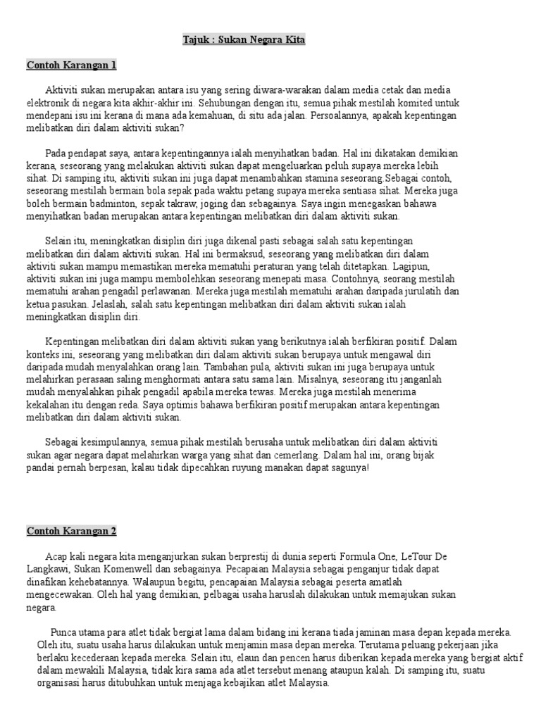 Contoh Karangan Sukan Pt3