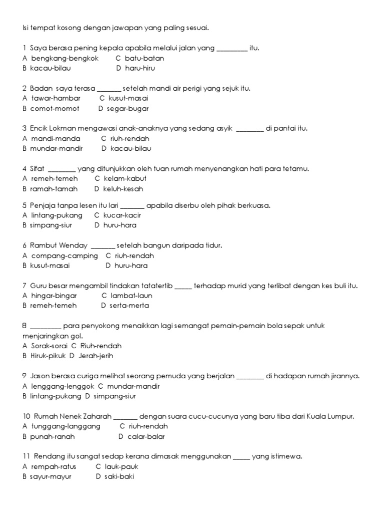 Latihan Kata Ganda Berentak Tahun 5 Geng Sekolah