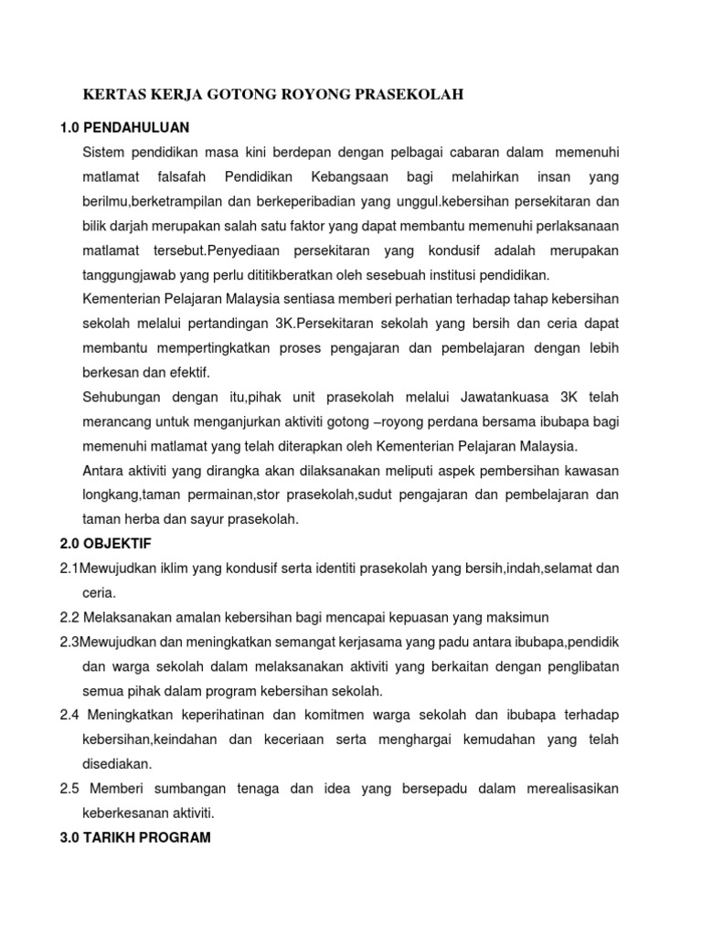 Doc Kertas Kerja Program Bersama Ibubapa Prasekolah Gotong Royong Perdana Hari Keluarga Prasekolah Sk Bukit Kuari 2016 Program 2 Hari Keluarga Prasekolah Amal Udin Academia Edu