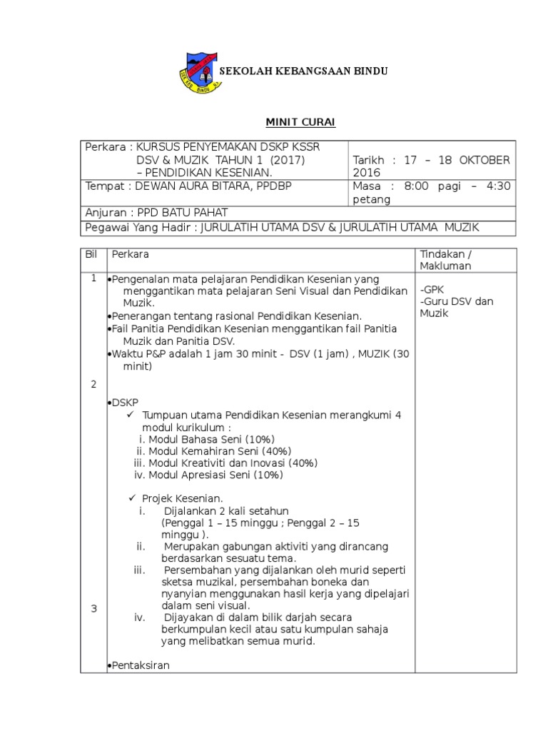Minit Curai Kursus Orientasi Dskp Mp Pendidikan Kesenian Thn3 2018 Pages 1 8 Text Version Anyflip