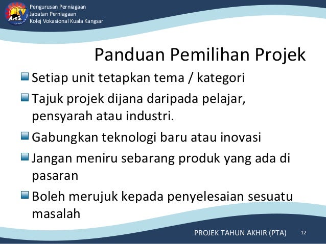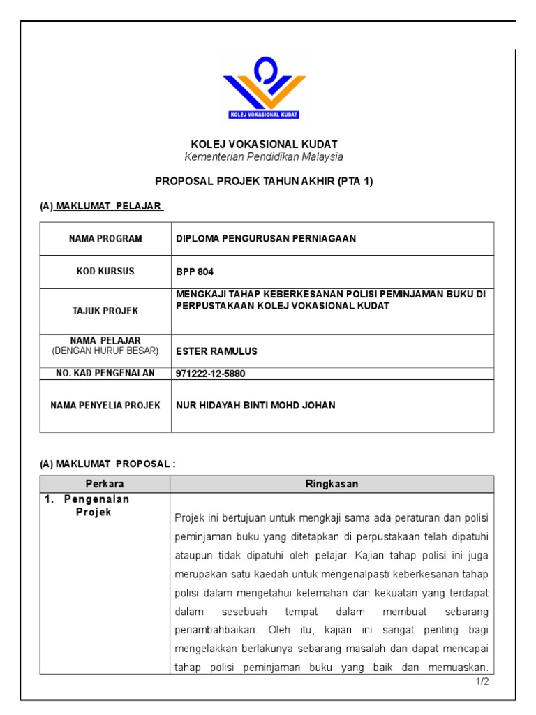 Contoh Penulisan Projek Tahun Akhir Kolej Vokasional