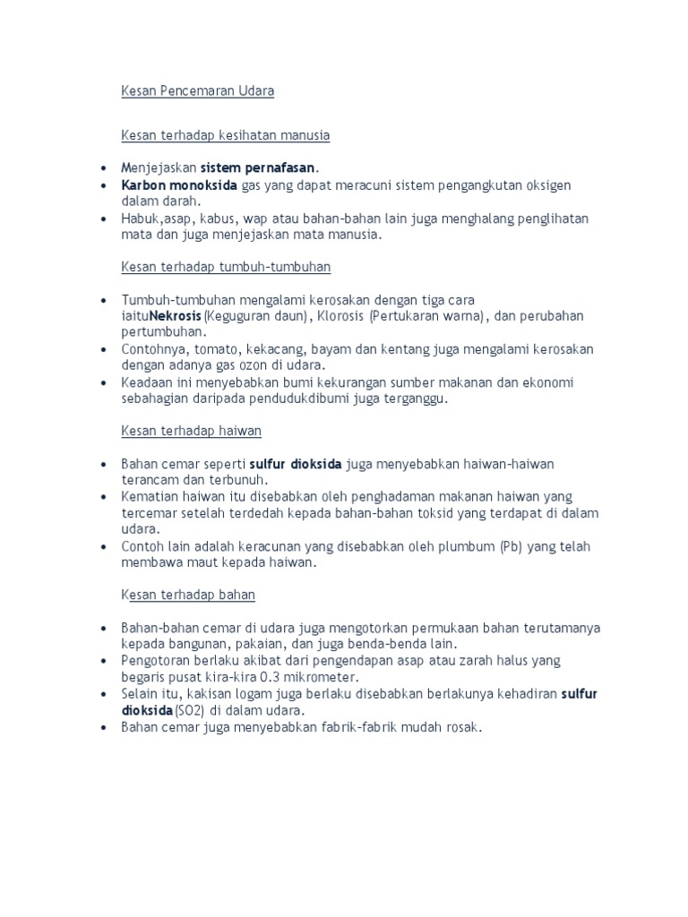 Punca Punca Pencemaran Udara Akses Bahasa