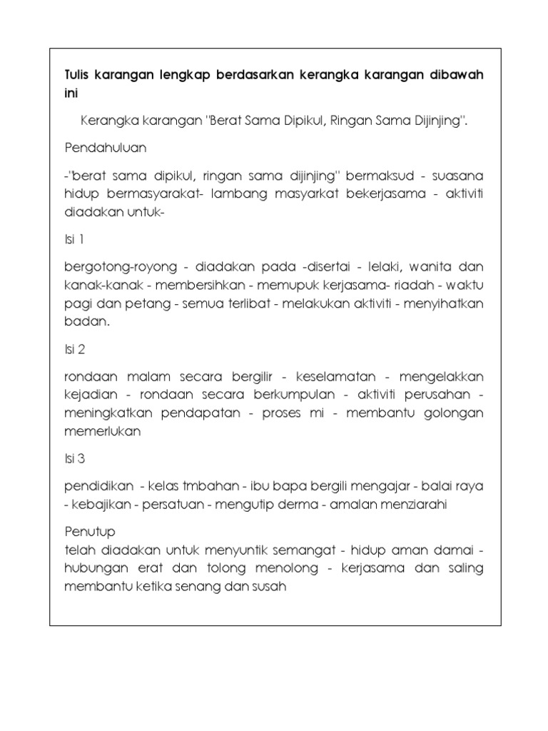 Tulis Karangan Lengkap Berdasarkan Kerangka Karangan Dibawah Ini