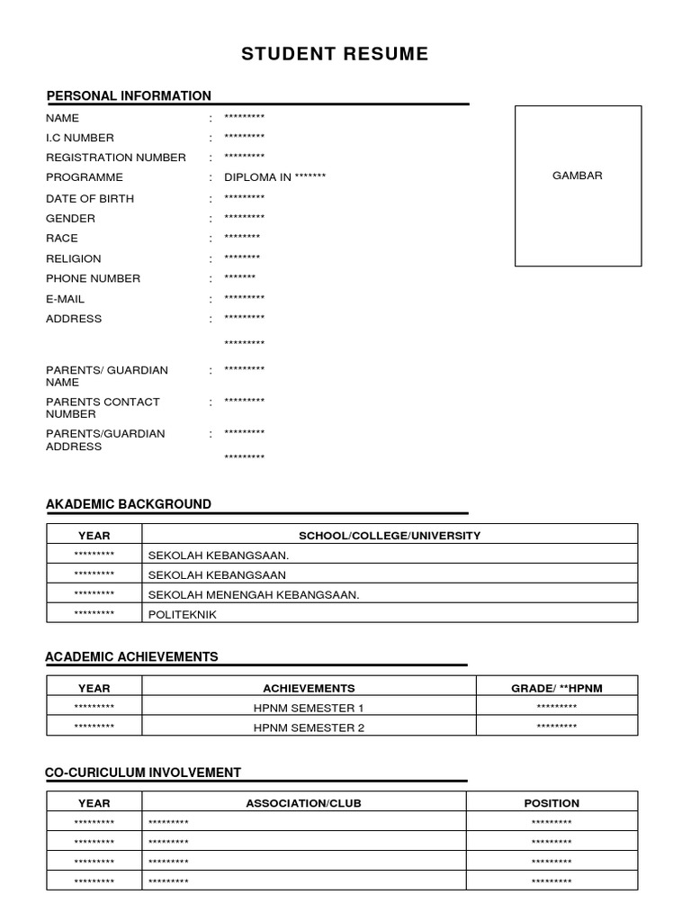 Resume Lengkap Untuk Memohon Kerja Pelajar Latihan Industri
