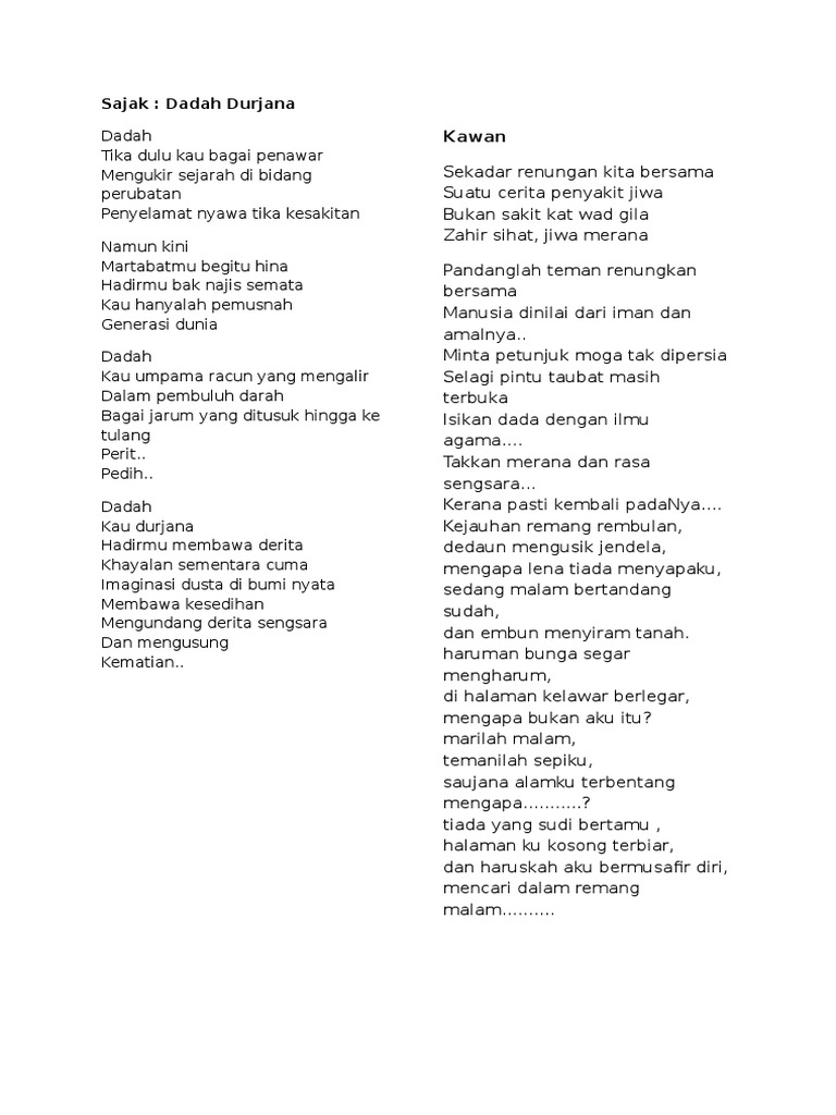 Bab 6b Sajak Contoh Puisi Pdf Puisi 1 Ceritera Pohon Bangsa Inilah Pohon Hayat Bangsa Kekar Berpaut Pada Akar Asal Budaya Pasak Kukuh Di Bumi Merdeka Course Hero