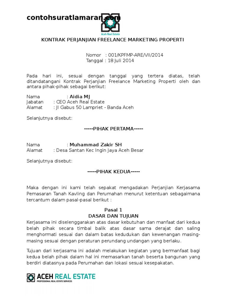 Surat Perjanjian Freelance Marketing Properti