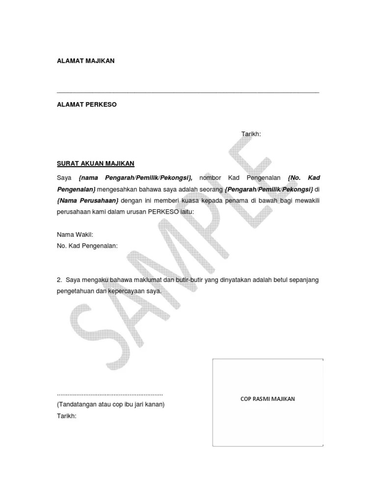 Contoh Surat Kuasa Wakil Majikan Contoh Surat