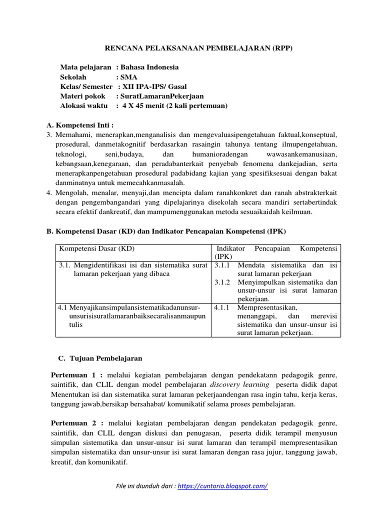 Rpp Surat Lamaran Pekerjaan Kd 3 1 Dan 4 1 Kelas Xii K 13 2018 2019 Docx