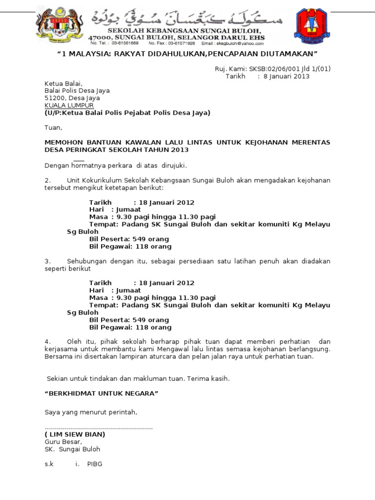 Surat Kepada Polis Pohon Kawalan Keselamatan Dan Trafik