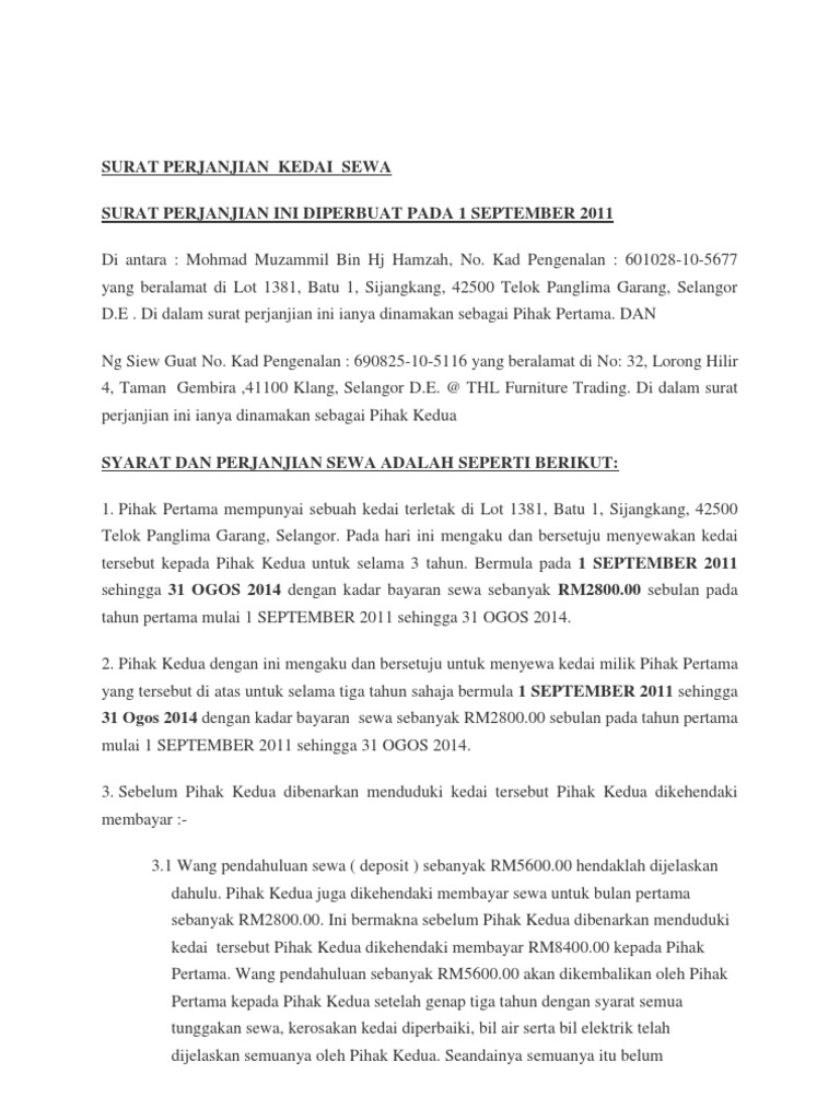 Doc Surat Perjanjian Sewa Kedai Rent Agreement Nedy Elmayra Academia Edu