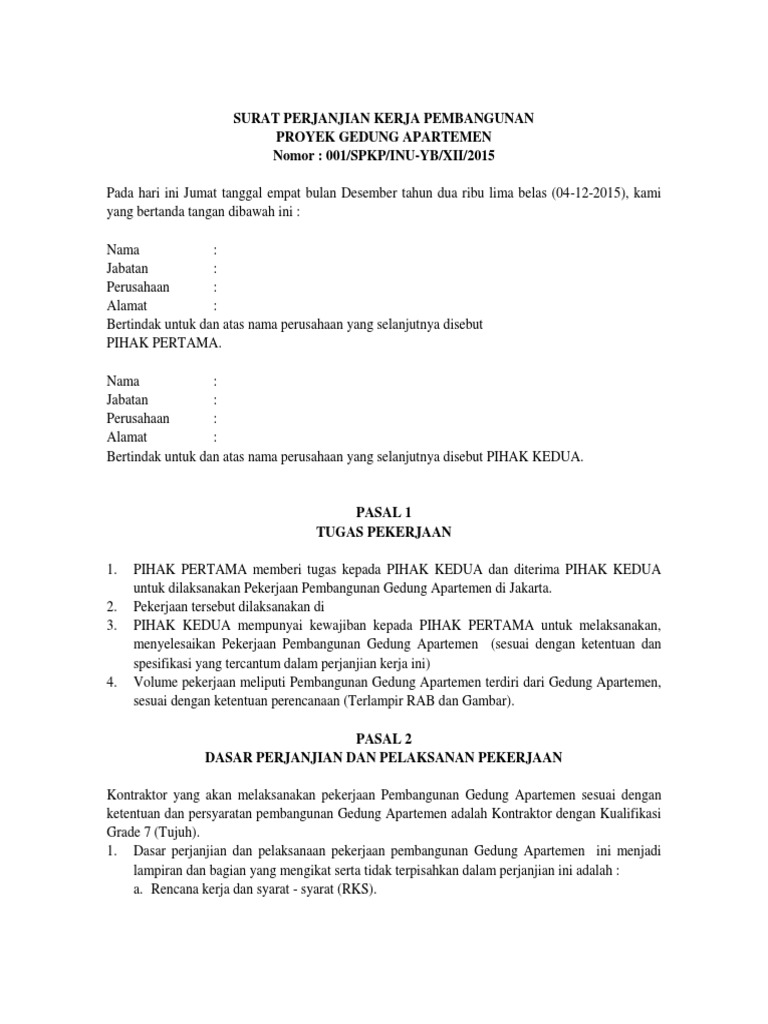 Contoh Surat Perjanjian Kontrak Kerja Proyek Pdf Contoh Seputar Surat