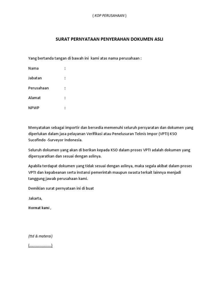 Surat Pernyataan Penyerahan Dokumen Asli 2018 Docx Kop Perusahaan Surat Pernyataan Dokumen Asli Yang Bertanda Tangan Di Bawah Ini Kami Atas Nama Course Hero