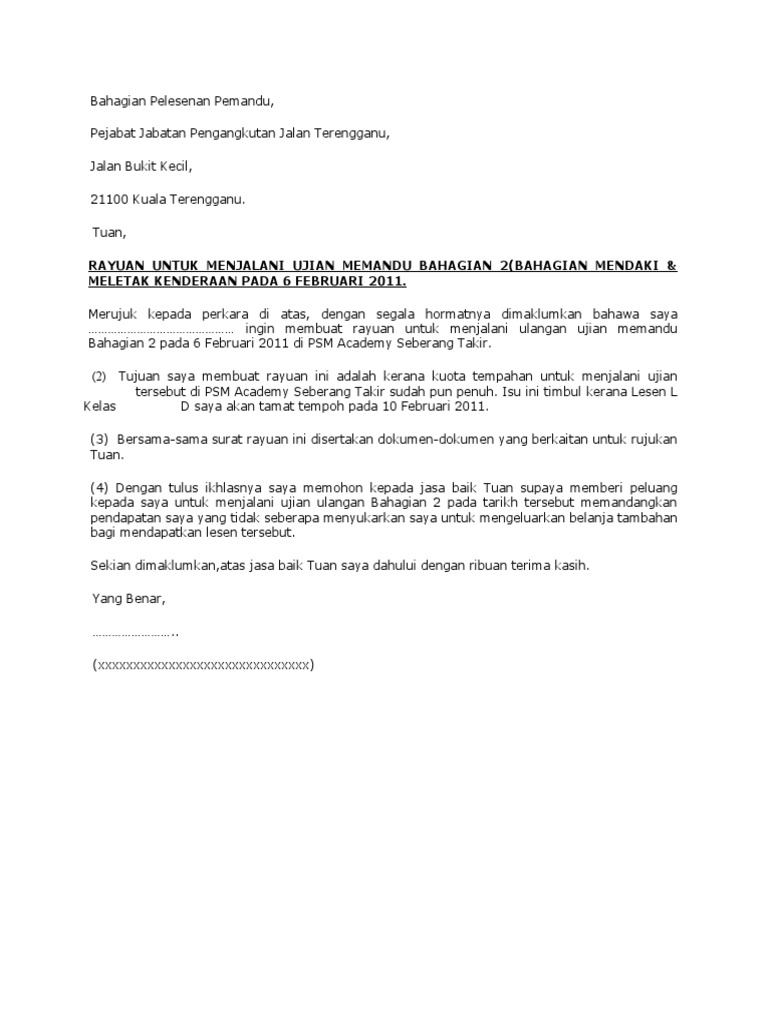 Surat Rayuan Lesen Jpj Rasmi Sud