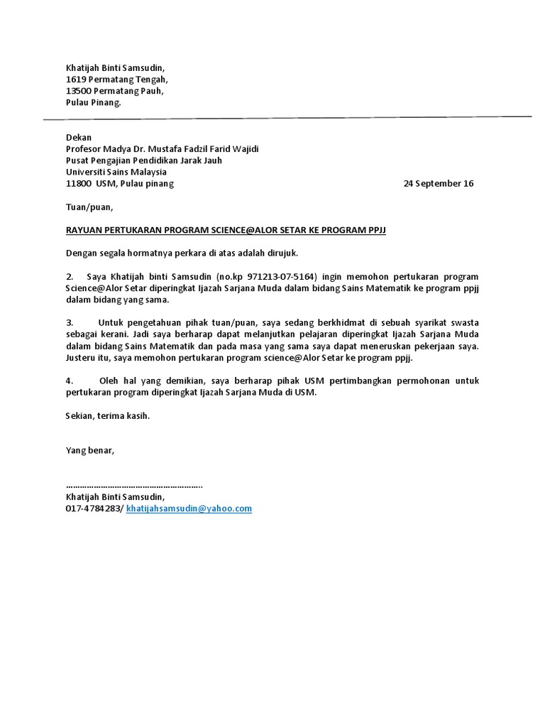 D Ent Contoh Surat Permohonan Pertukaran Program Pengajian