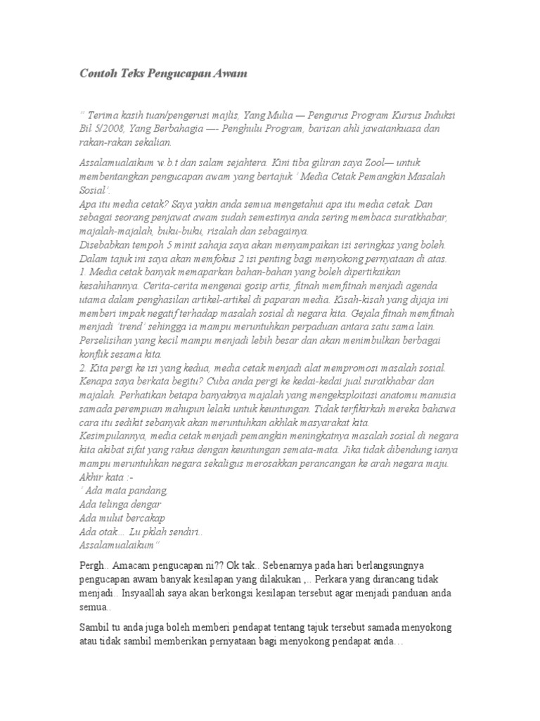 Contoh Teks Pengucapan Awam Yang Menarik Dan Ringkas