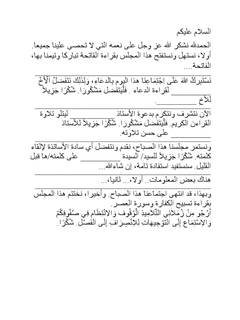 Teks Pengacara Majlis Perhimpunan Sekolah Dalam Bahasa Arab Kronis C