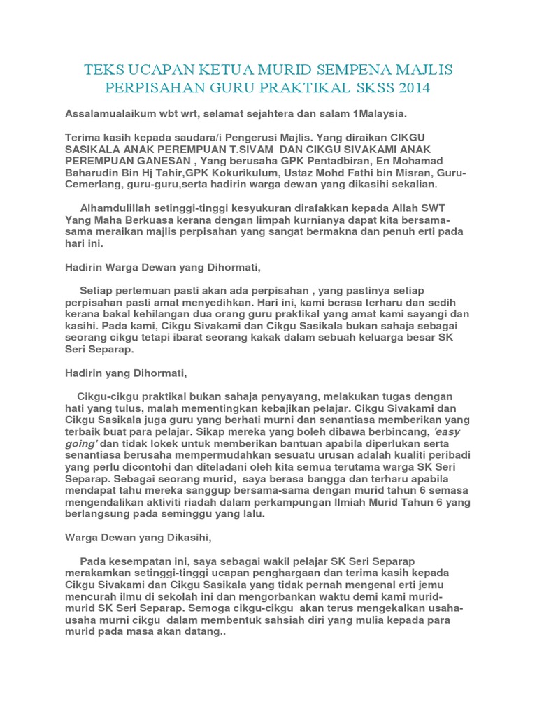 Doc Contoh Ucapan Wakil Murid Untuk Majlis Persaraan Sharina Sharina Academia Edu