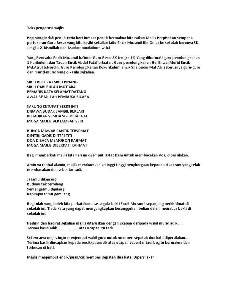 Doc Teks Pengacara Majlis Majlis Perpisahan Jan 2018 Majidah Najihah Academia Edu