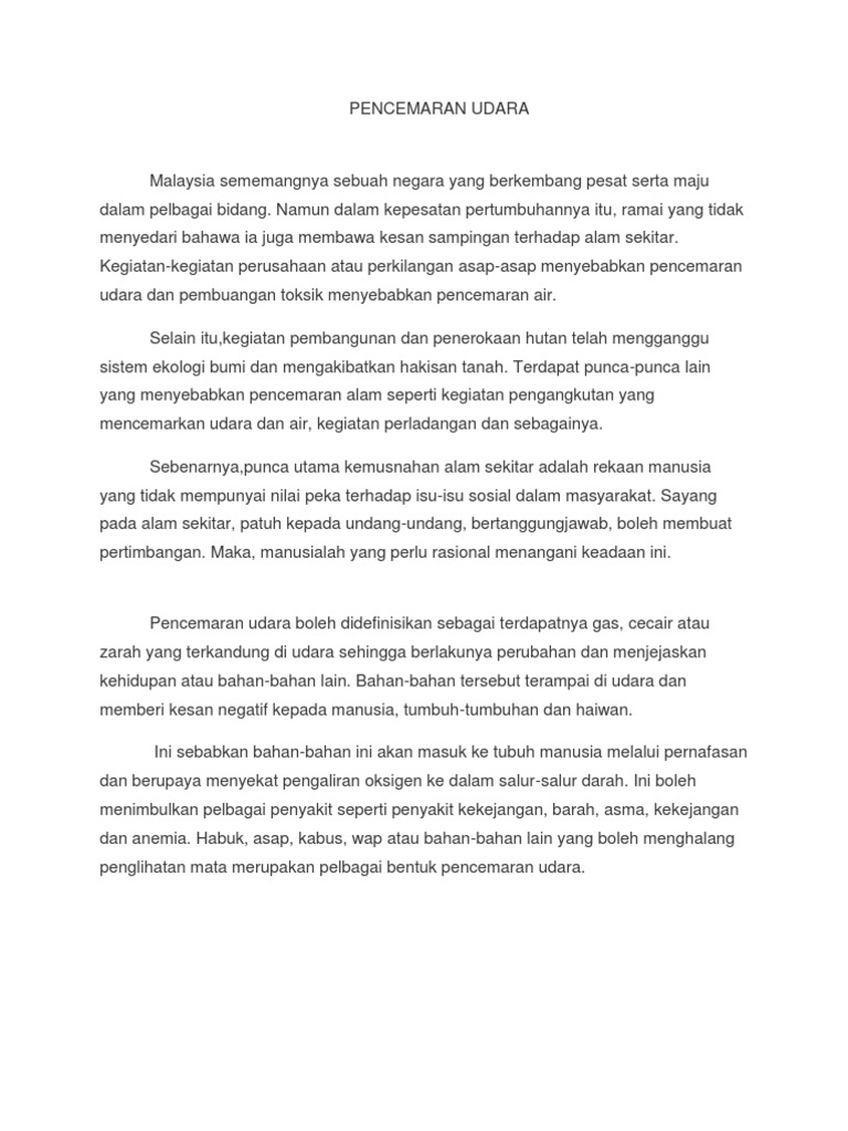 Petikan Teks Pencemaran Udara Tahun 5