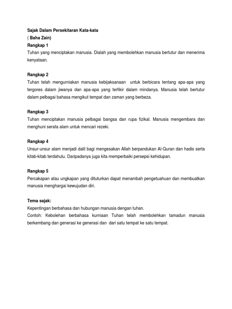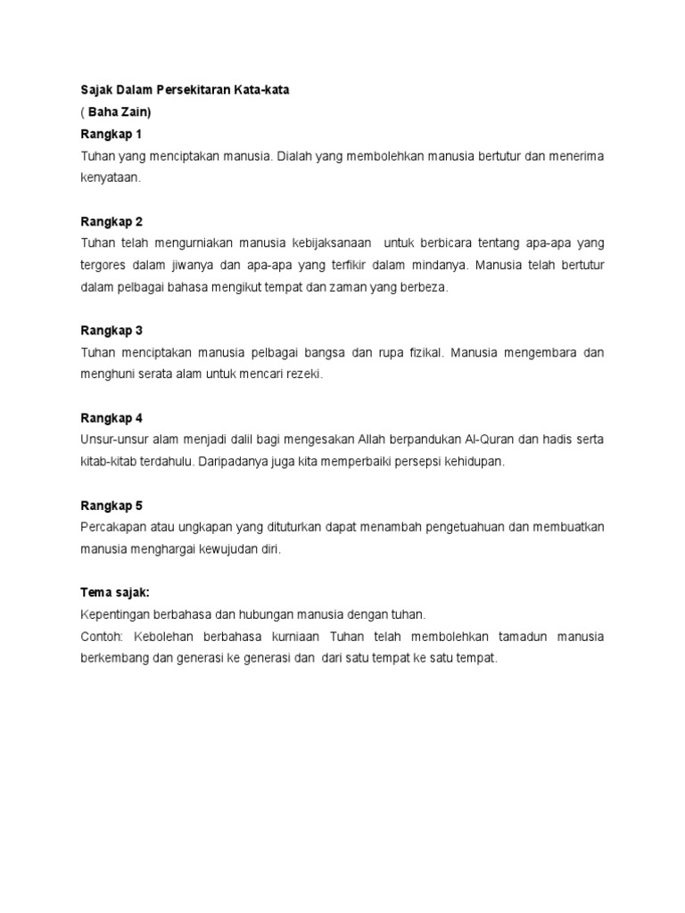 Sajak Dalam Persekitaran Kata Kata Oleh Baha Zain