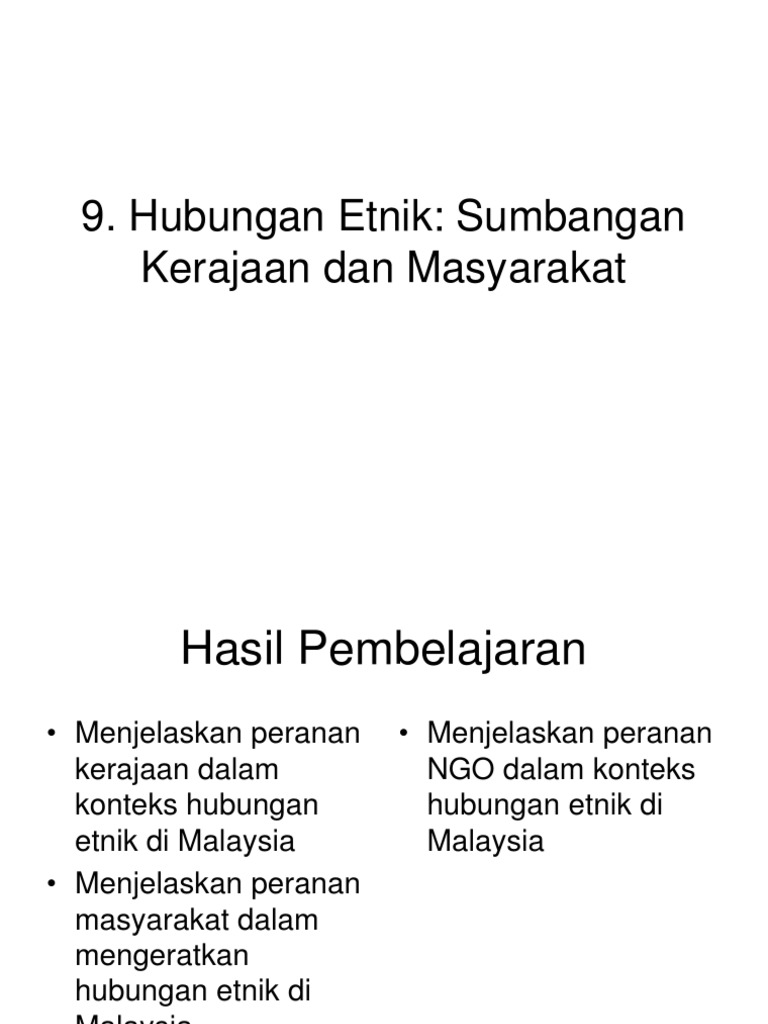 9 Hubungan Etnik Sumbangan Kerajaan Dan Masyarakat