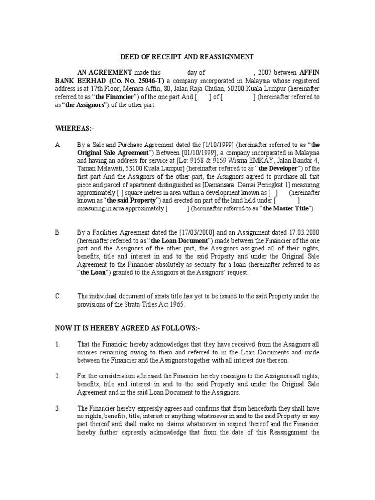 Deed Of Receipt And Reassignment Sample Gofucndowntist Blogcu Com