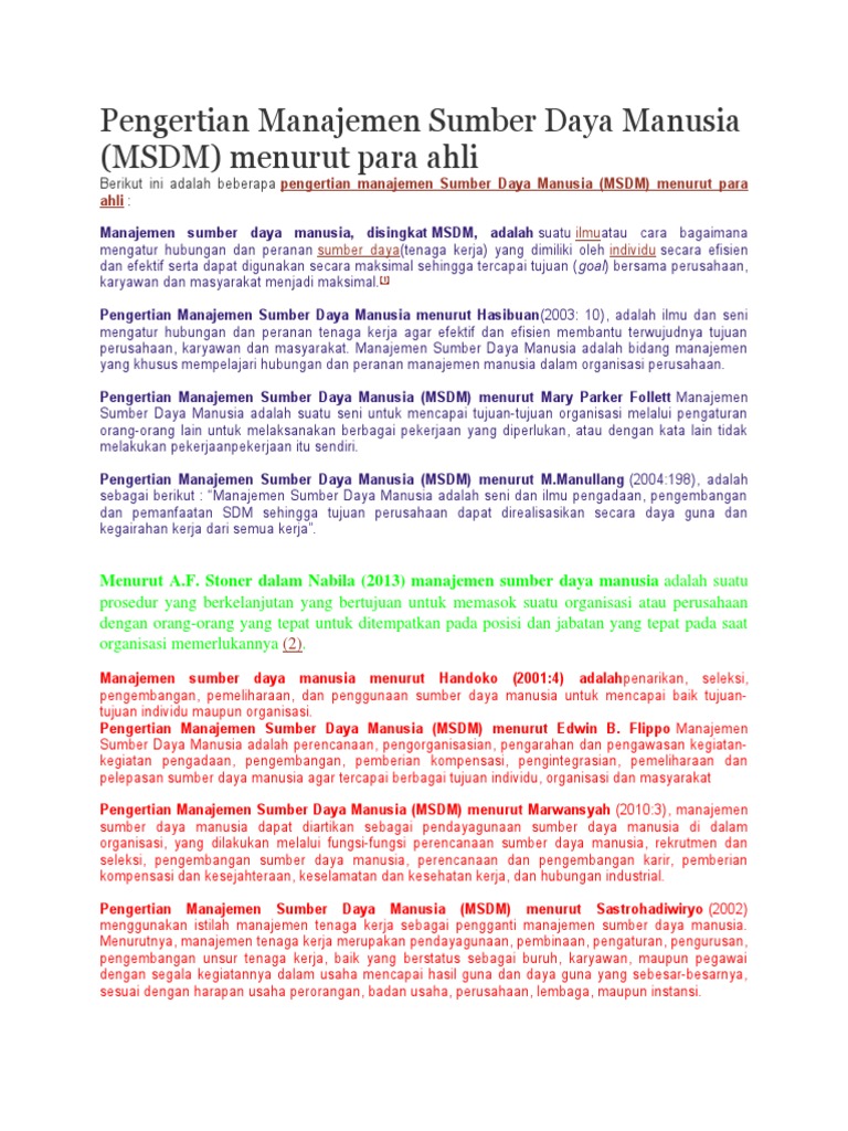 Pengertian Manajemen Sumber Daya Manusia Msdm Menurut Para Ahli