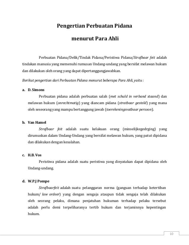 Asas Asas Hukum Pidana Pengertian Perbuatan Pidana Menurut Para Ahli