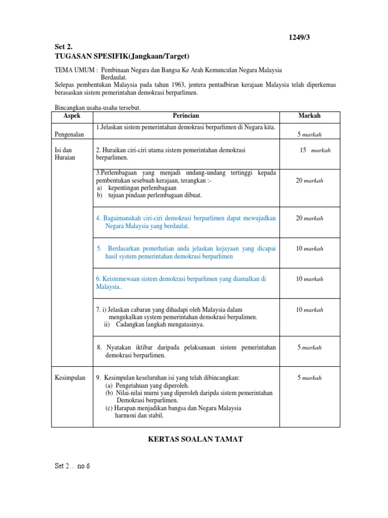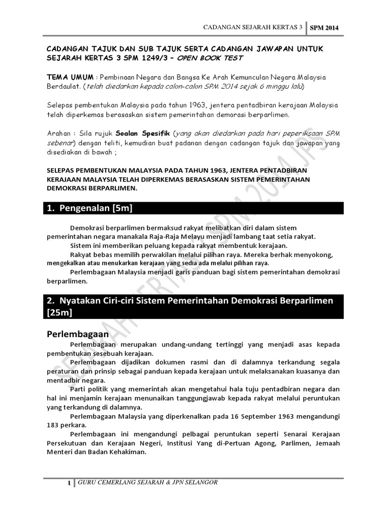 Kertas 3 Sejarah Spm 2014 Page2 Skema Jawapan Kertas 3 Sejarah Spm 2014 1 Demokrasi Berparlimen Di Malaysia 5 Markah School Work School Exam