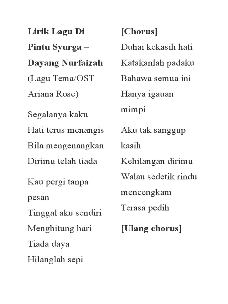Dayang Nurfaizah Di Pintu Syurga Lirik Ost Ariana Rose Youtube Ariana Ost Youtube