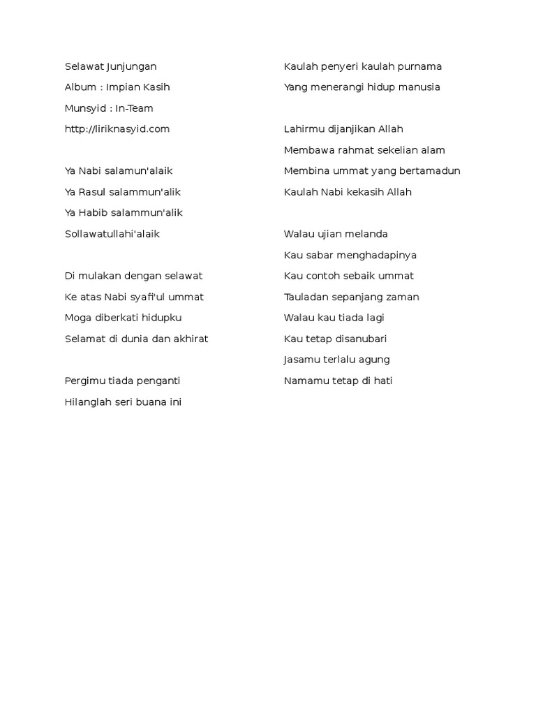 Lirik Nasyid Dia Kekasih Allah Docx Document