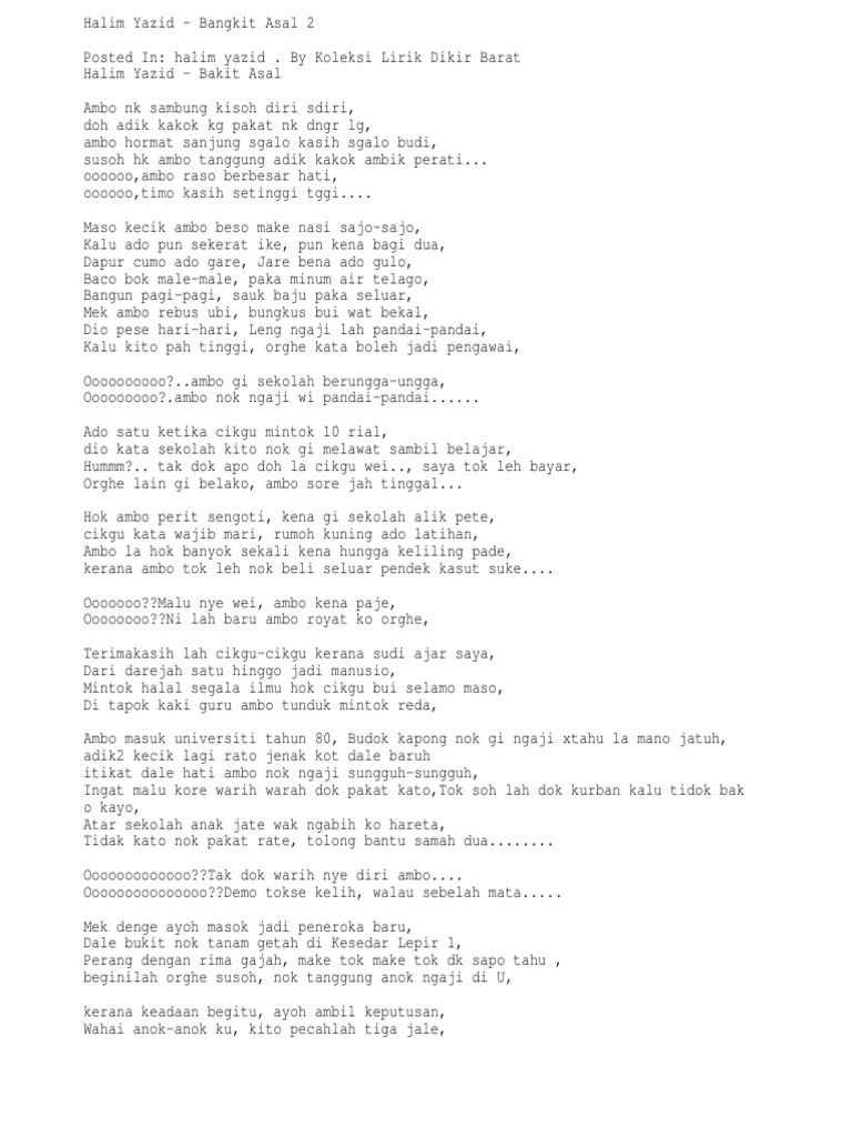 Diri Ambo Bangkit Asal Halim Yazid Azhan Co