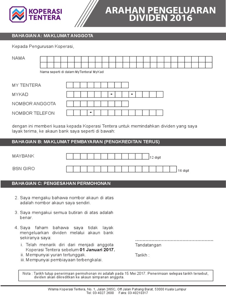 Borang Dividen Koperasi Tentera Online