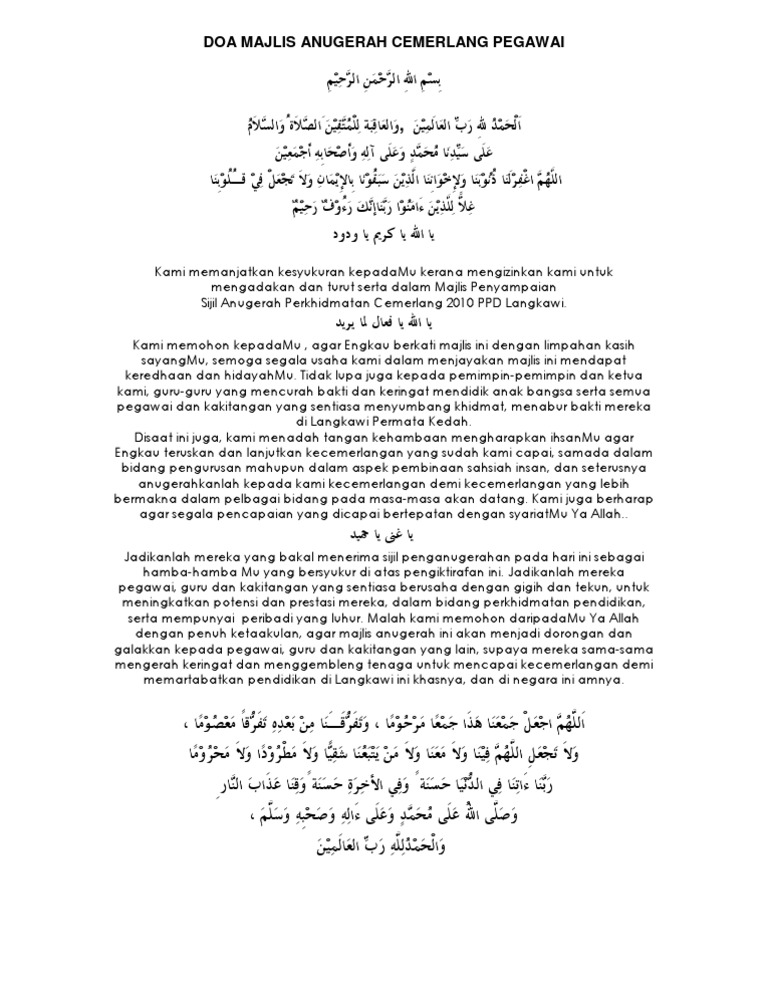Doc Doa Majlis Anugerah Cemerlang Zakir Shah Mir Bansah Academia Edu