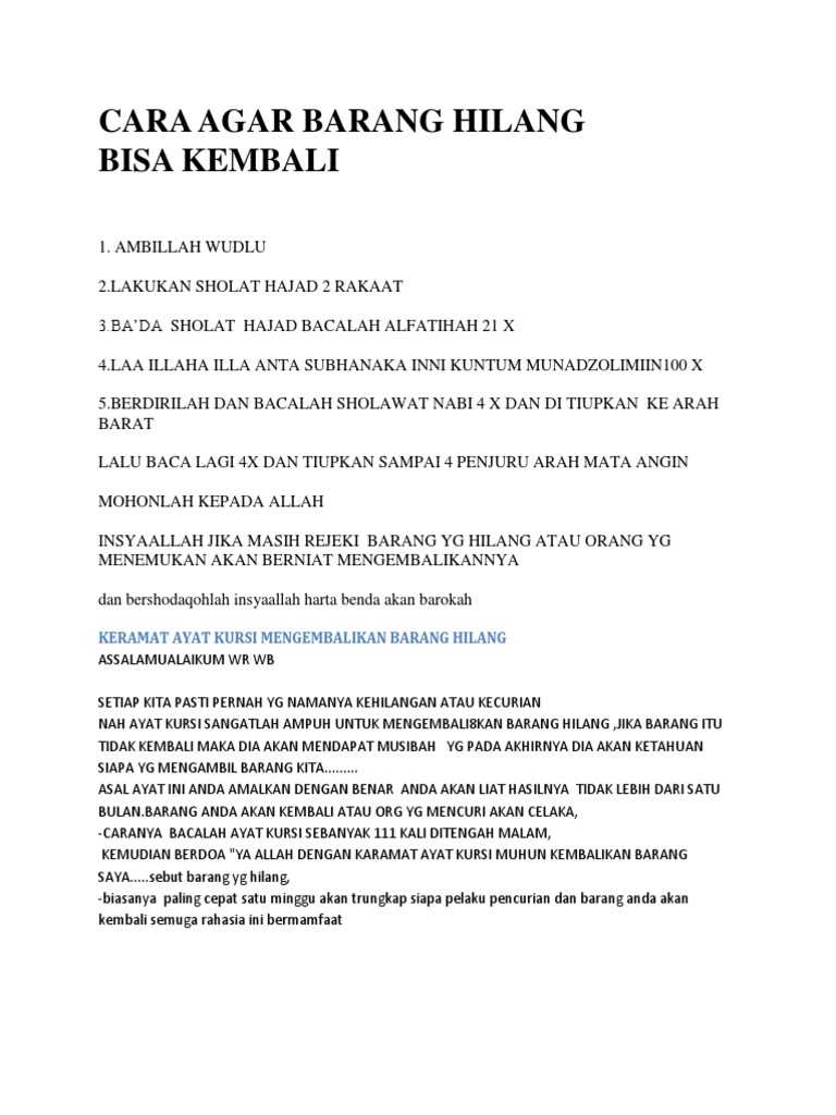 Doa Jika Barang Kita Hilang Dan Ingin Kembali Usaha Wong Jowo