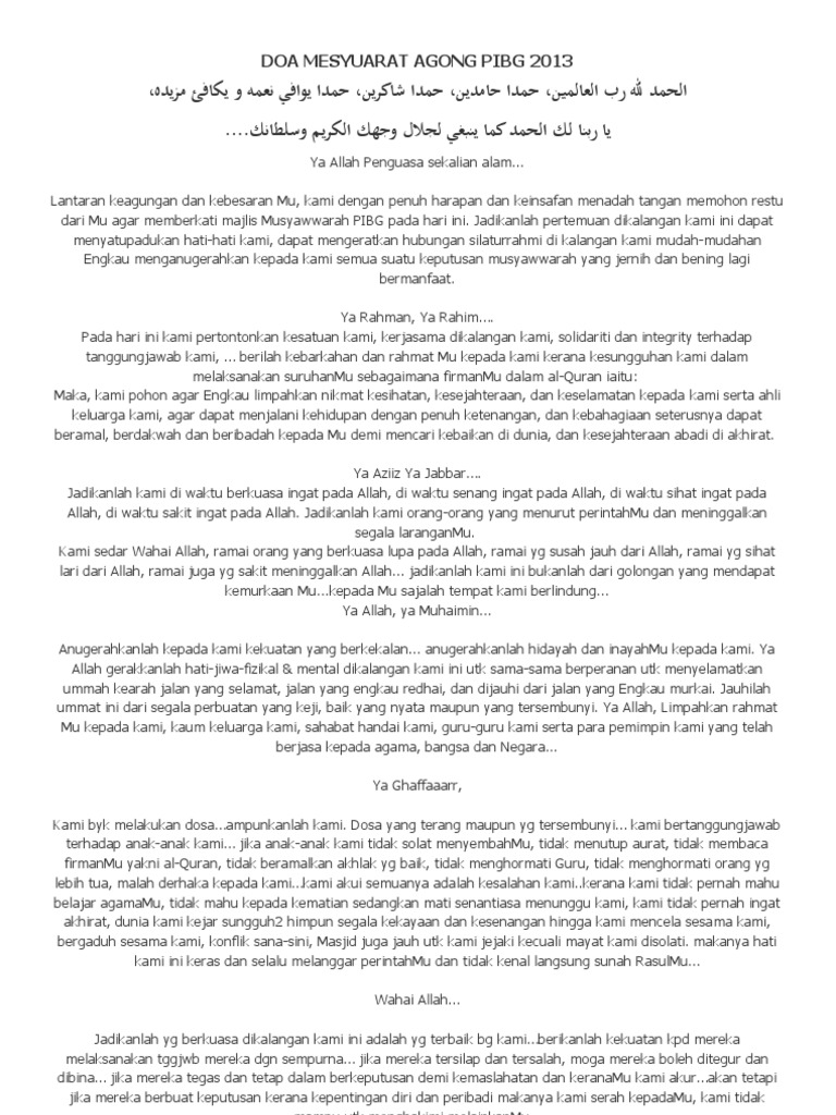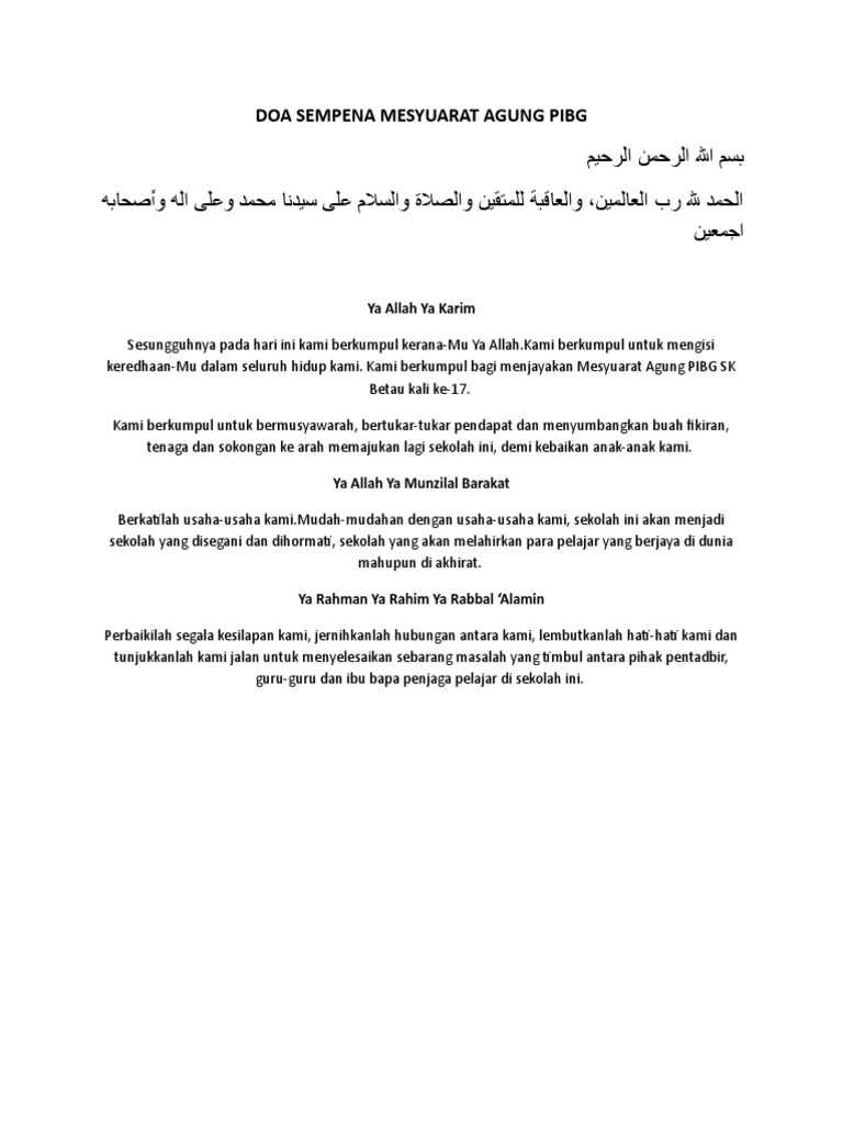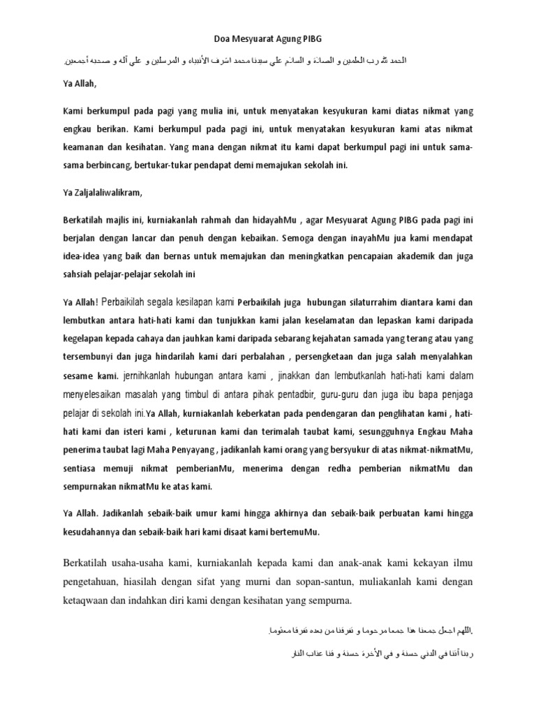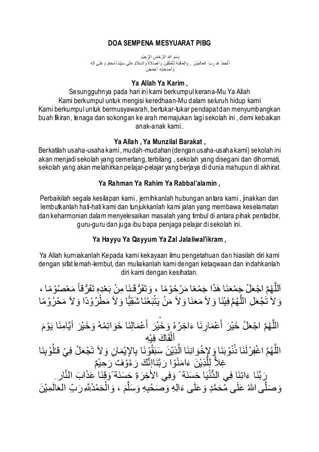 Doa Sempena Mesyuarat Pibg Pdf Document