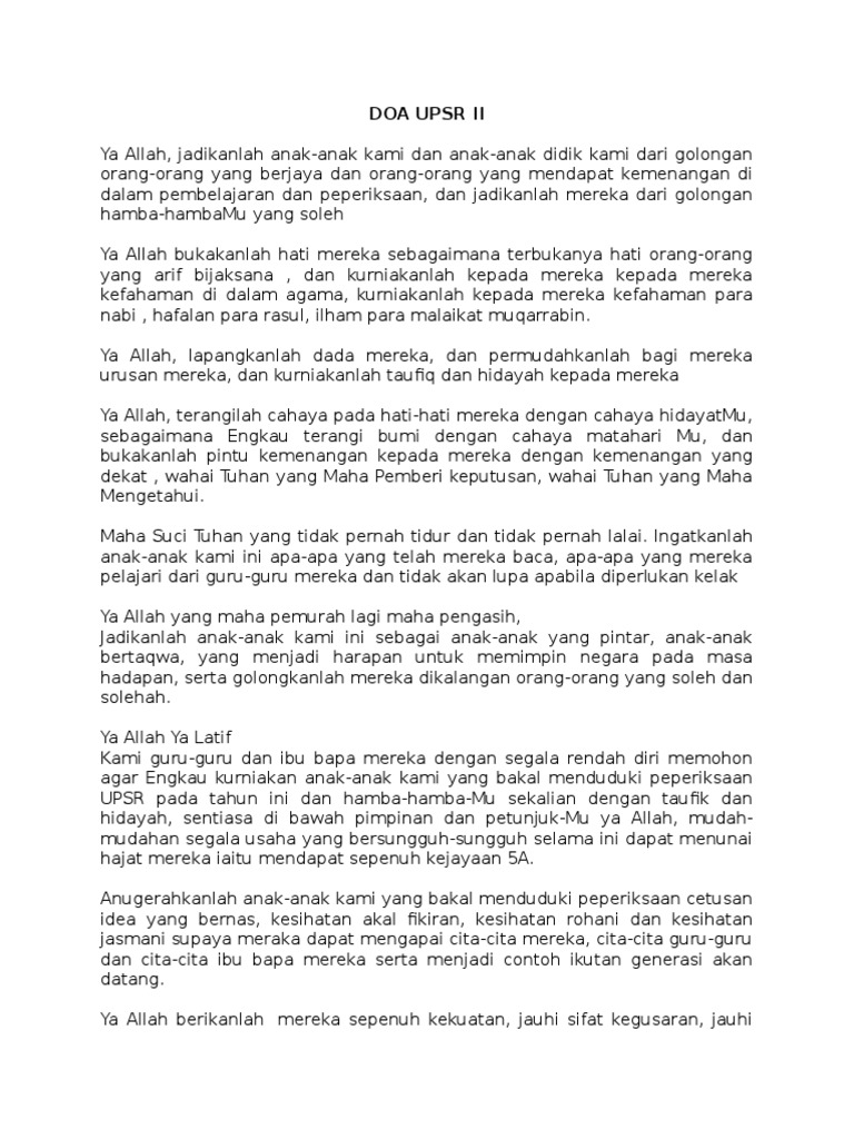Doa Sempena Menghadapi Peperiksaan Upsr