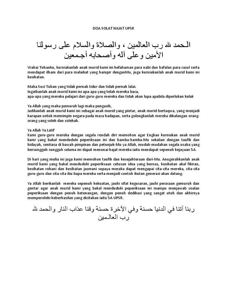Doa Solat Hajat Upsr