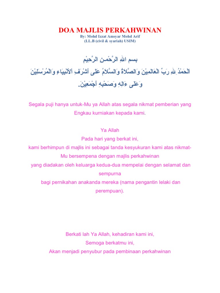 Doa Majlis Perkahwinan Pdf