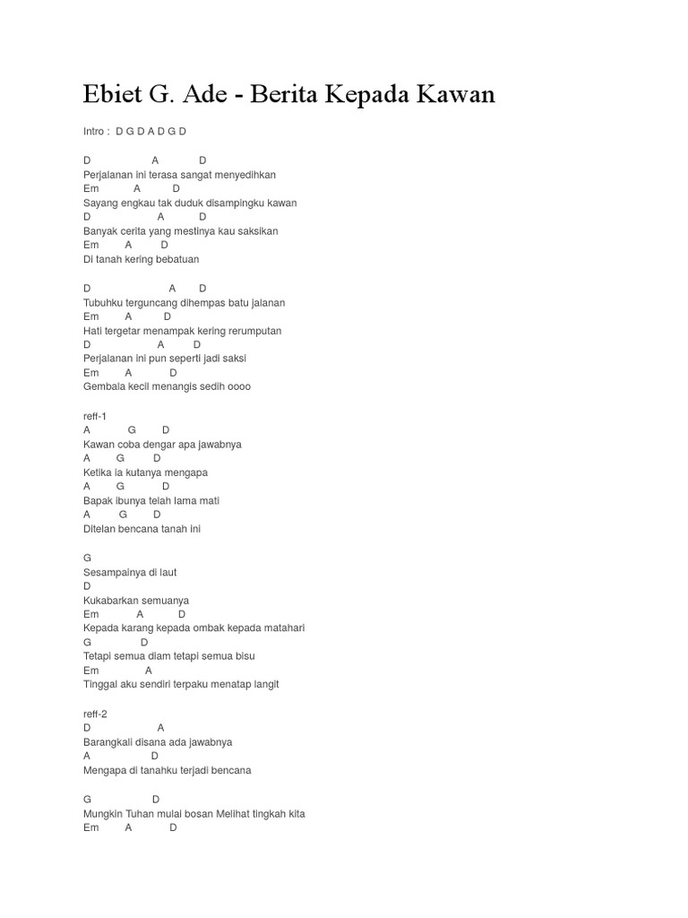 Chord Gitar Ebiet G Ade Berita Kepada Kawan Chord Gitar Lagu Lagu Kenangan