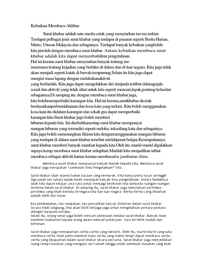 Karangan Upsr Faedah Faedah Membaca Surat Khabar Karangan Net
