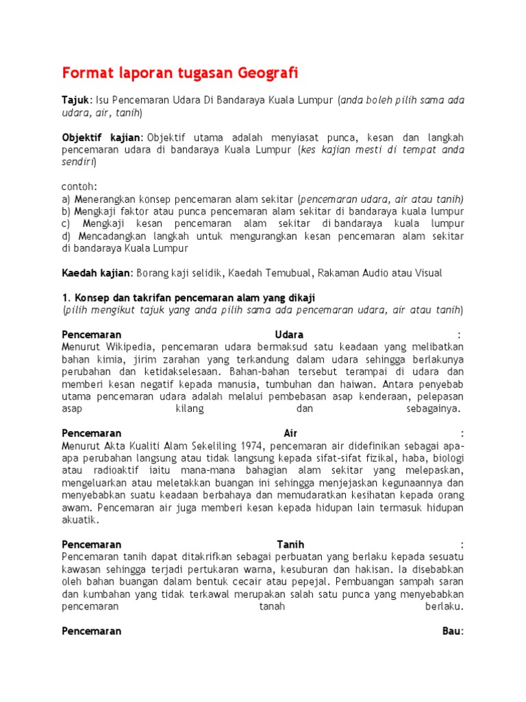 Format Laporan Tugasan Geografi Udara Air Tanih